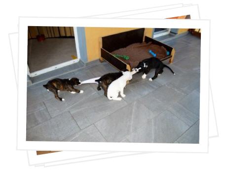 4 gestromte Rüden, 1 gestromte Hündin, 1 weiße Hündin